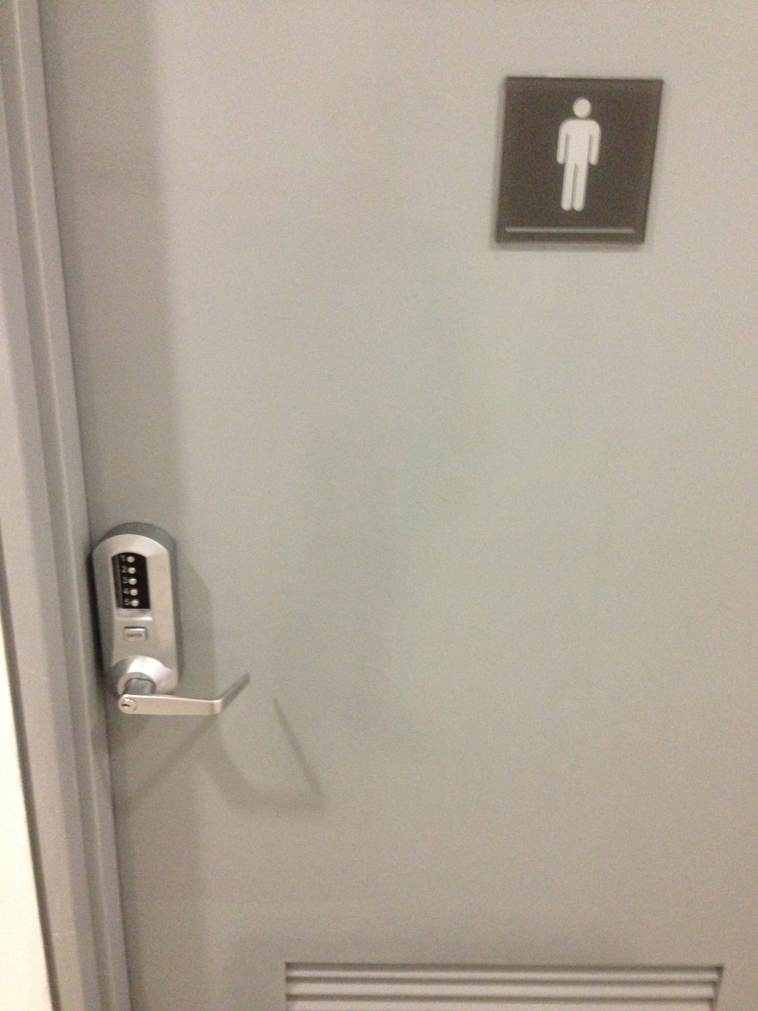 At another floor in the same building, another “someone” somehow decided to use a badge access control for the washrooms access, inline with those for the normal office access. This provides better consistency, and serves its purpose, i.e., meeting the requirements. Furthermore, with an electronic badge access system, if the shower gets overused, someone can turn on the logging and start monitoring the usage of the facility to find out who have been showering all the time.