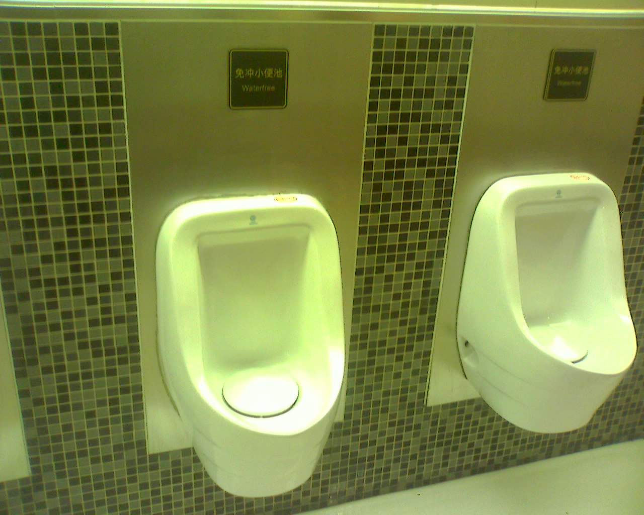 At the Beijing international airport, the sign "Waterfree" appeared just above the urinals. For those who only understand English, they would probably wonder what's the significance of this phrase. Does it mean that "water is free" in this toilet, or is it advising people that they can water around freely, without the worry of any economic consequences? The Chinese writing nevertheless states what it means -- "flushing is not necessary for this urinal". Somehow, the floor is always wet.